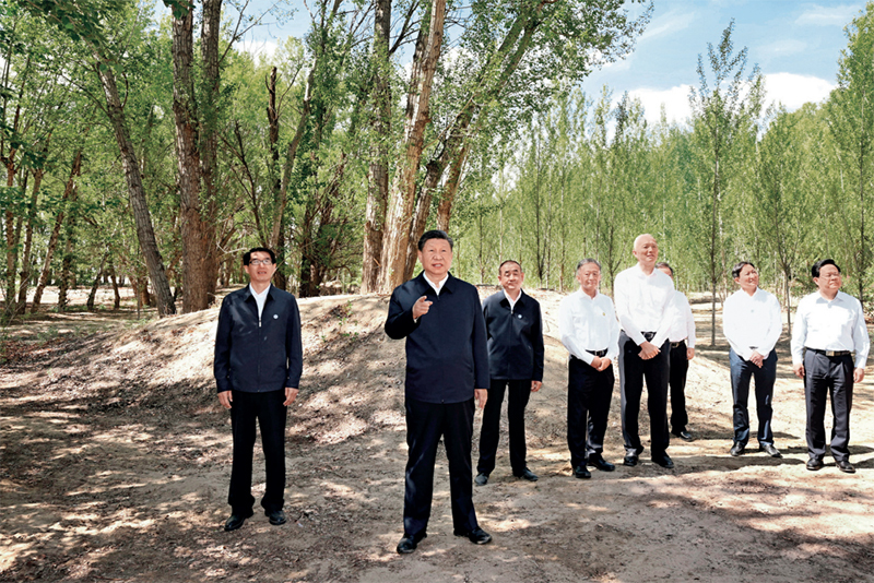2023年6月5日至6日,中共中央總書記、國家主席、中央軍委主席習(xí)近平在內(nèi)蒙古巴彥淖爾考察,并主持召開加強荒漠化綜合防治和推進“三北”等重點生態(tài)工程建設(shè)座談會。這是6日上午,習(xí)近平在臨河區(qū)國營新華林場考察。新華社記者 謝環(huán)馳/攝