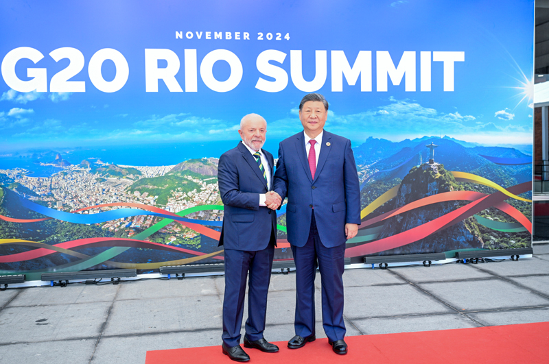 當?shù)貢r間11月18日上午,國家主席習近平在巴西里約熱內(nèi)盧出席二十國集團領(lǐng)導人第十九次峰會。這是峰會開始前,習近平受到巴西總統(tǒng)盧拉熱情迎接。新華社記者 李學仁 攝